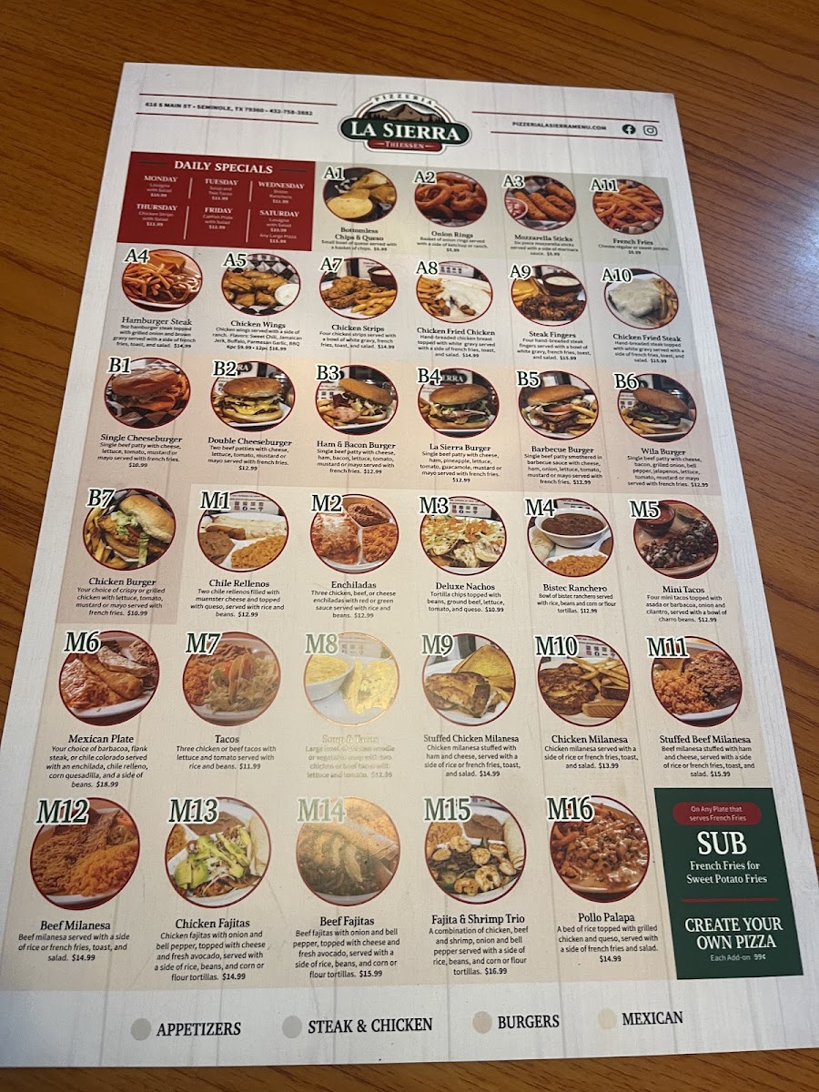 If you’re looking for a place that serves up mouth-watering pizzas with a homey touch, the Homestyle Pizzeria Menu is where you’ll want to be. Located at 618 S Main St in Seminole, Texas, this spot brings you the best of classic pizza flavors with a cozy, welcoming vibe. Whether you're in the mood for a classic cheese pizza or something with a little more flair, the menu offers something for everyone. Fresh ingredients, homemade sauces, and a variety of toppings come together to create the perfect slice every time. Pair your pizza with a refreshing drink and enjoy a simple yet satisfying meal that will have you coming back for more. From traditional options to unique creations, each dish is prepared with care to deliver the comforting taste of home.